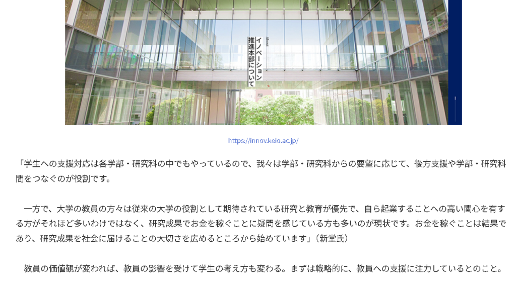 引用:知的資産部門と連携し、起業しやすい環境を整備。慶應ならではの学内スタートアップ・エコシステムの基盤を築く | IP BASE