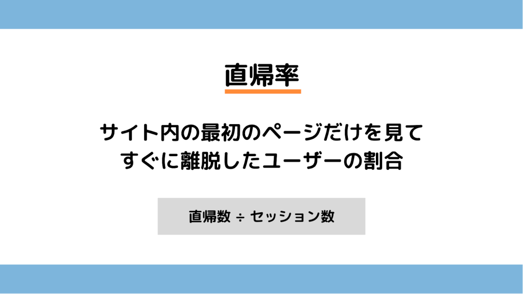 「直帰率」とは、サイト内の最初のページだけを見てすぐに離脱(直帰)したユーザーの割合です。