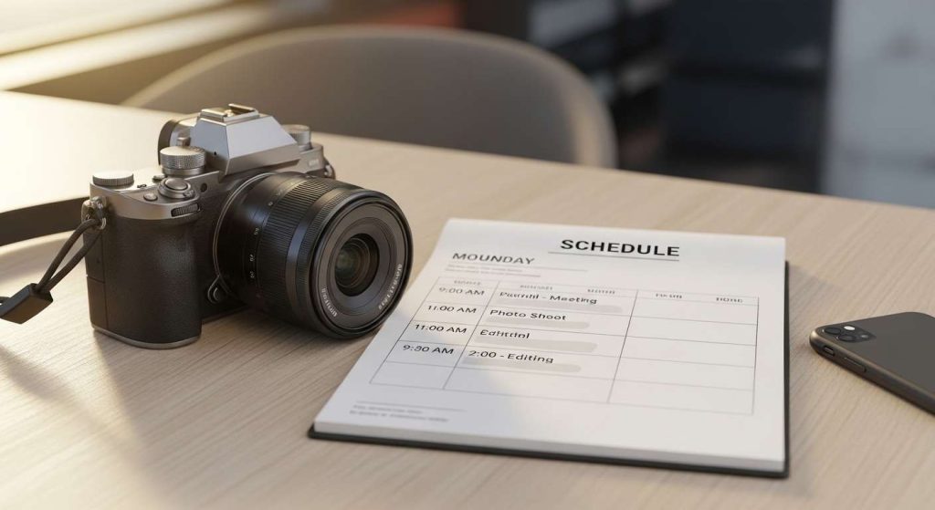 この問題を防ぐためには、撮影スケジュールに余裕を持たせることが重要です。また、カットリストに優先順位を設定しておくことで、時間が不足した場合でも重要な写真を確実に撮影できます。